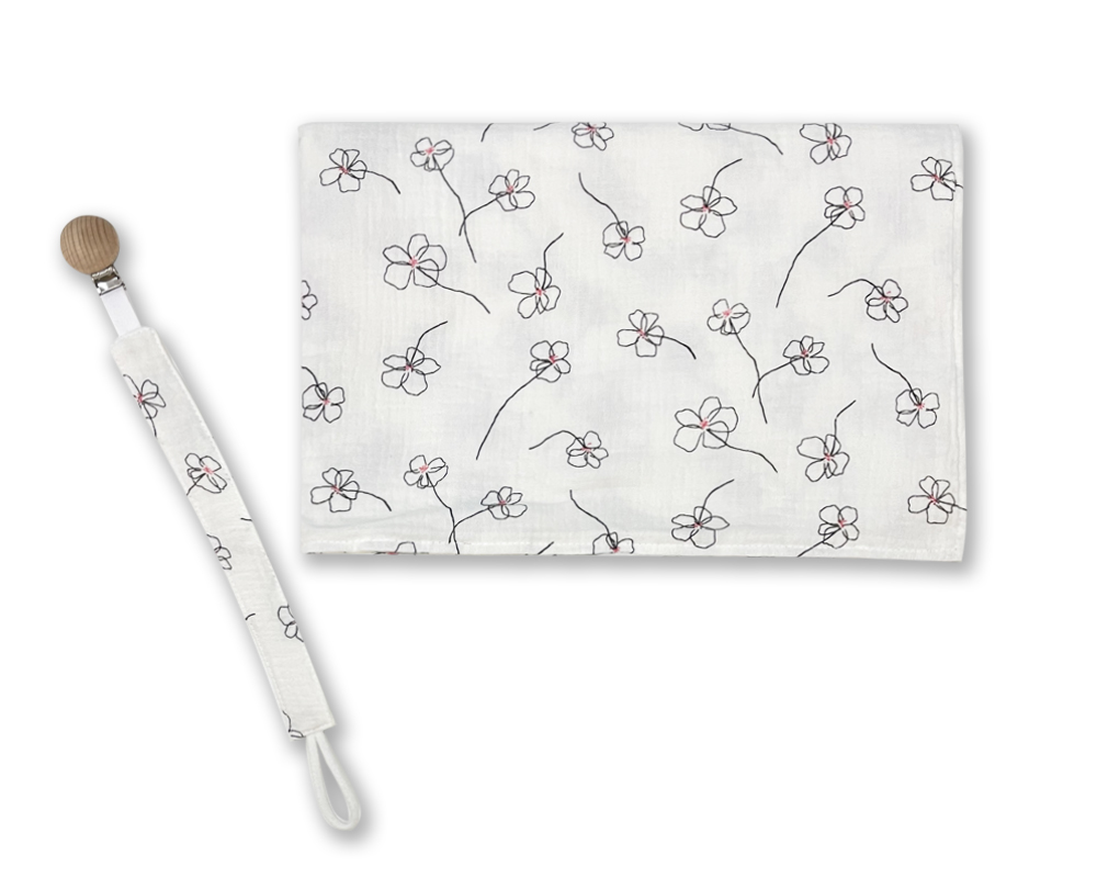 - Dětská mušelínová deka Černé kvítka + klip na dudlík zdarma
