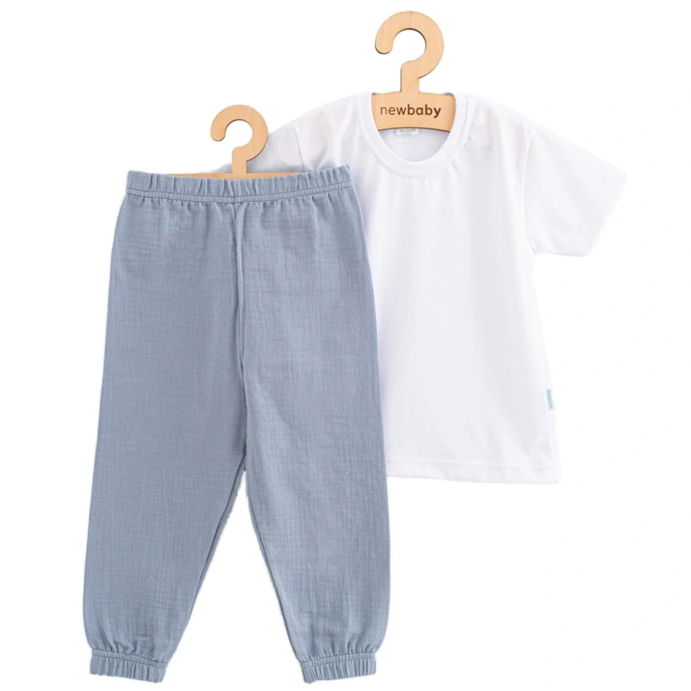 - Dětská souprava bavlněné tričko+mušelínové kalhoty modrá 98