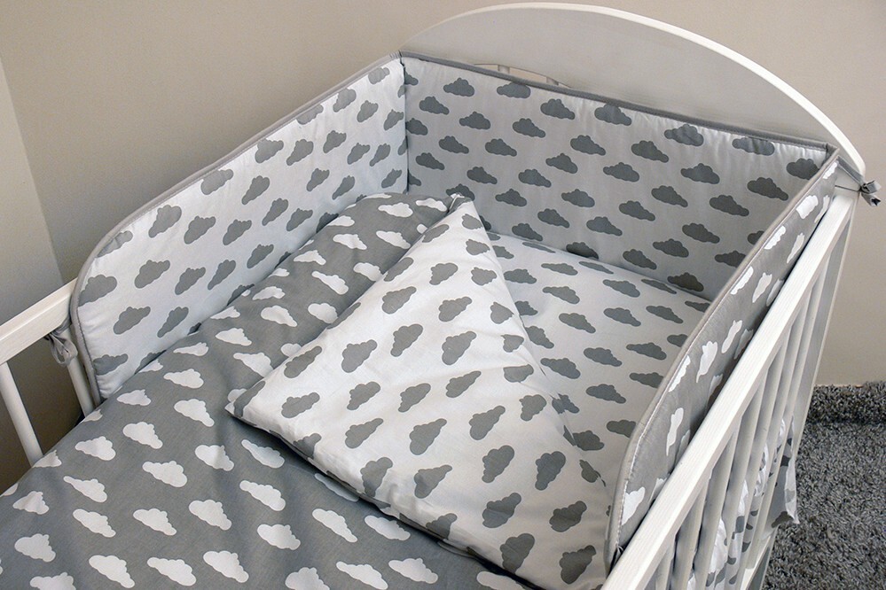 Dětská 3 dílná souprava povlečení do postýlky Obláčky šedá