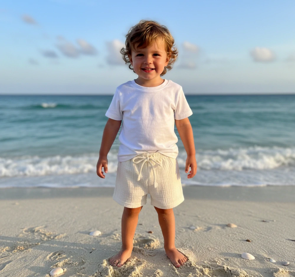 Dětské mušelínové kraťasy krém 86Skladem 4 ks179,00 Kč/ ks147,93 Kč bez DPH