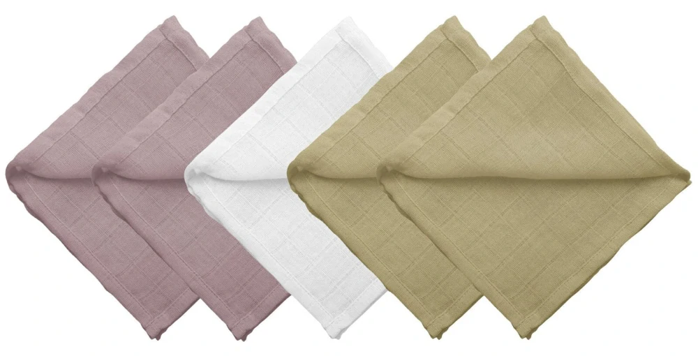- Dětské mušelínové mini plenky 5 kusů Pudrová, béžová, bílá