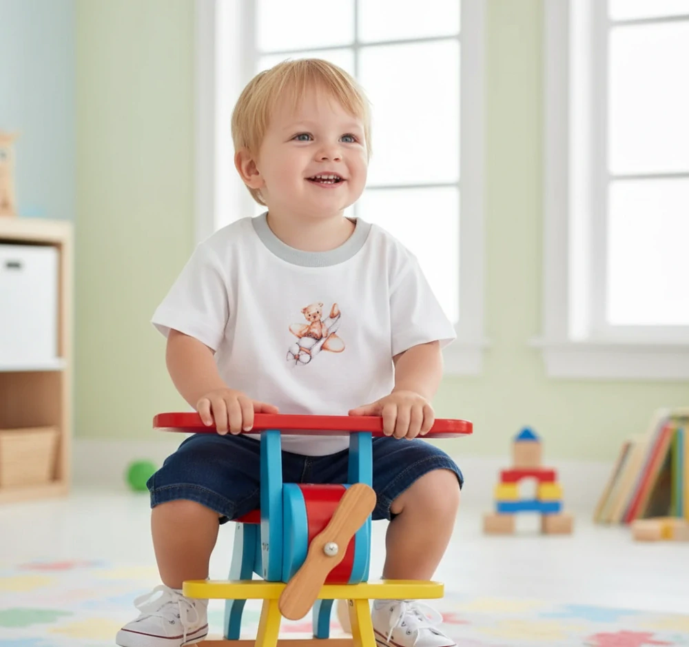 Kojenecké bavlněné tričko s krátkým rukávem s obrázkem Pilot - medvídek