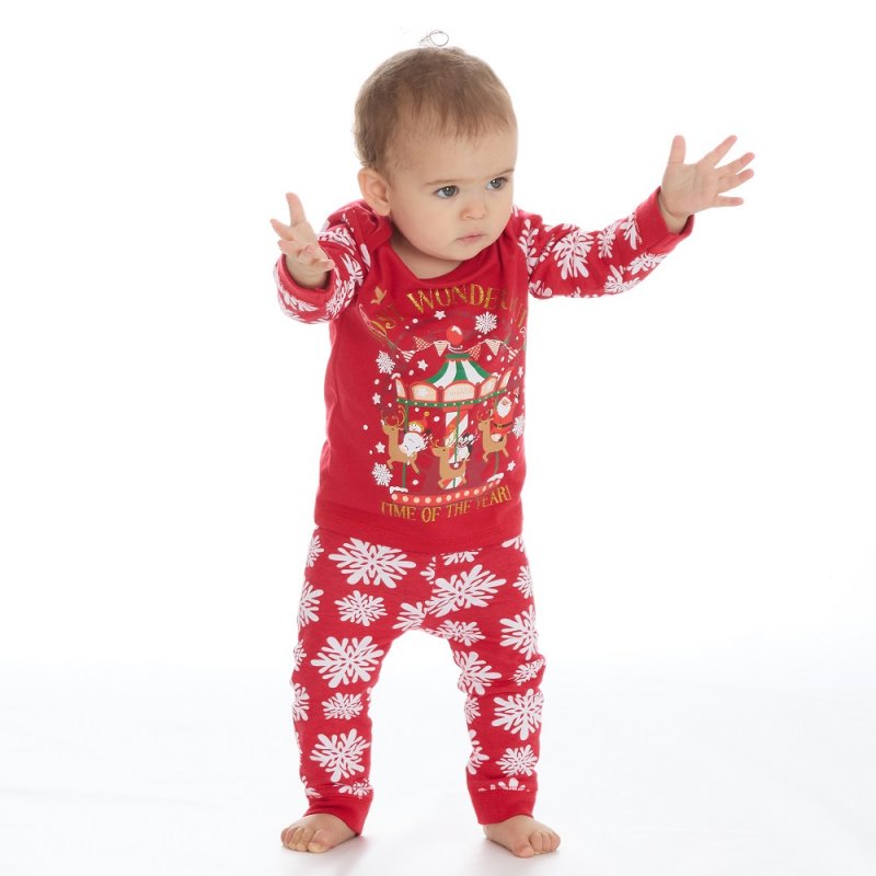 pyžamo zdobí krásný vánoční obrázek a bílé vločky, lodičkový výstřih pro pohodlné oblékání přes hlavičku.