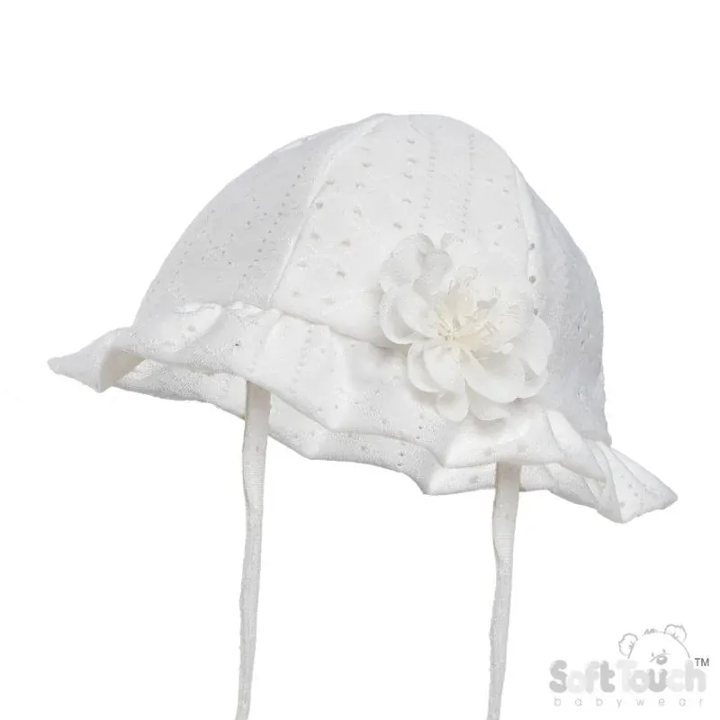 Dívčí letní klobouček s květinkou bílá