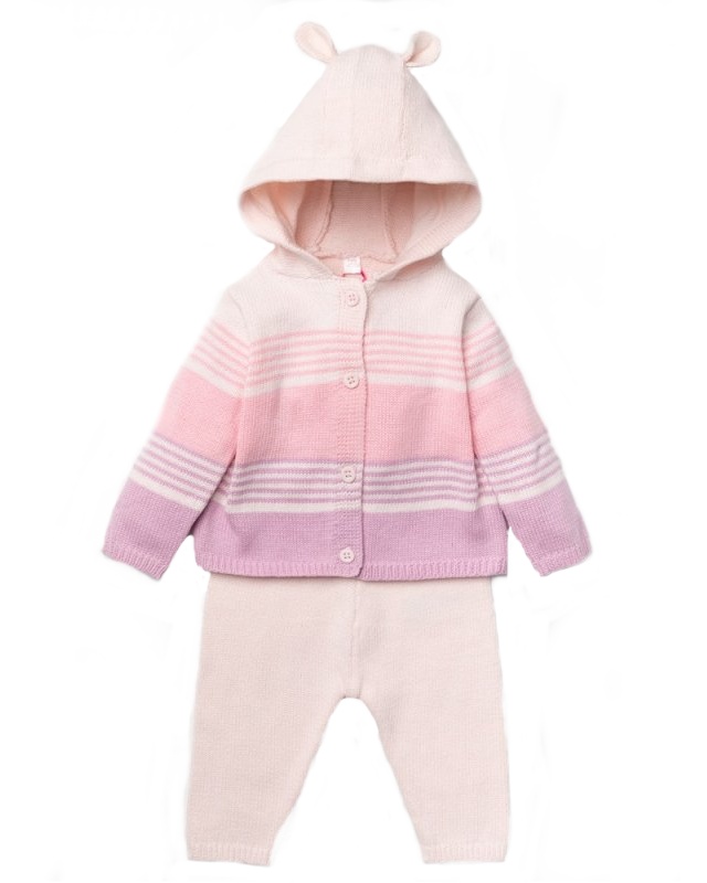 Kojenecká 2D pletená souprava Růžový proužek 74