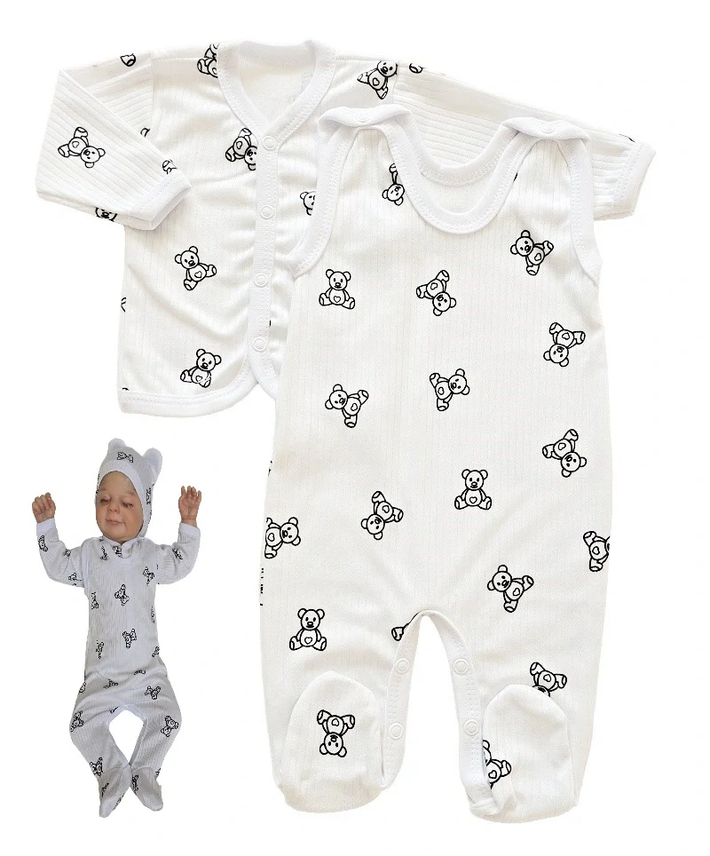 soupravička obsahuje 1x dupačky vyrobené z kvalitní jemné žebrované bavlny , zapínání na ramínkách a mezi nožičkami na baby druky - usnadňuje pohodlné oblékání i přebalování novorozených miminek. 1x kabátek je ideální pro nejmenší miminka, praktické zapínání na baby druky po celé délce uprostřed. S krásným roztomilým potiskem našich medvídků Brumlíků se srdíčkem. Bez čepičky.