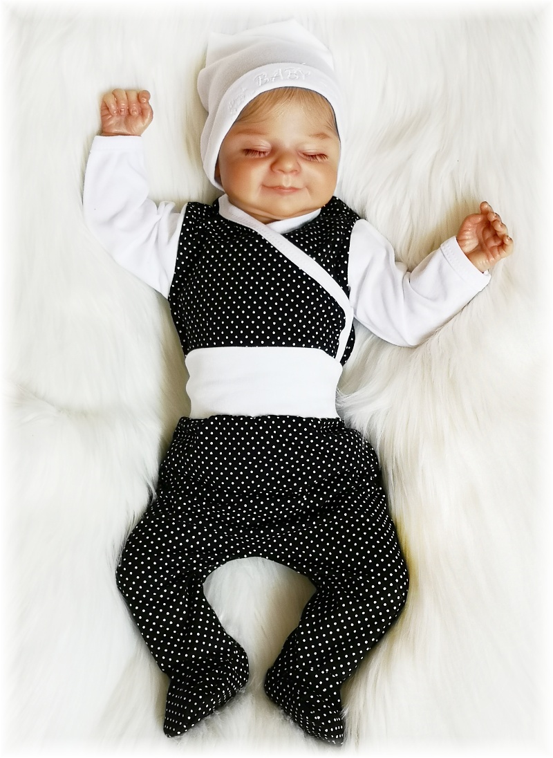 Kojenecká 2D souprava Černé puntíky body+polodupačky 68