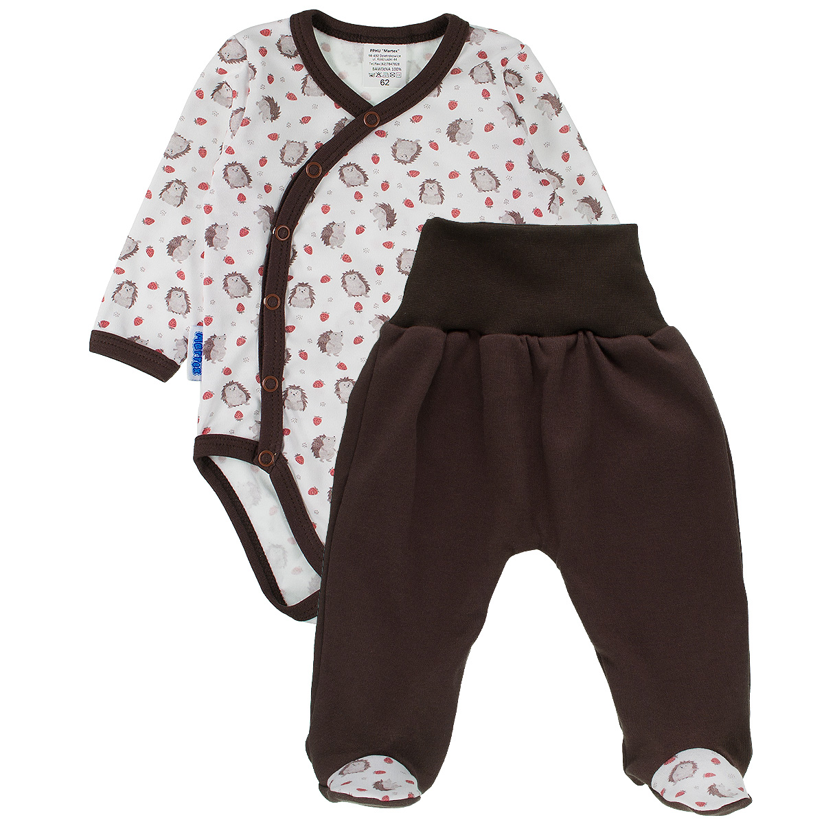 propínací body s obrázky ježečků a jahůdek a polodupačky s pružným širokým pasem z kvalitní jemné 100% bavlny.