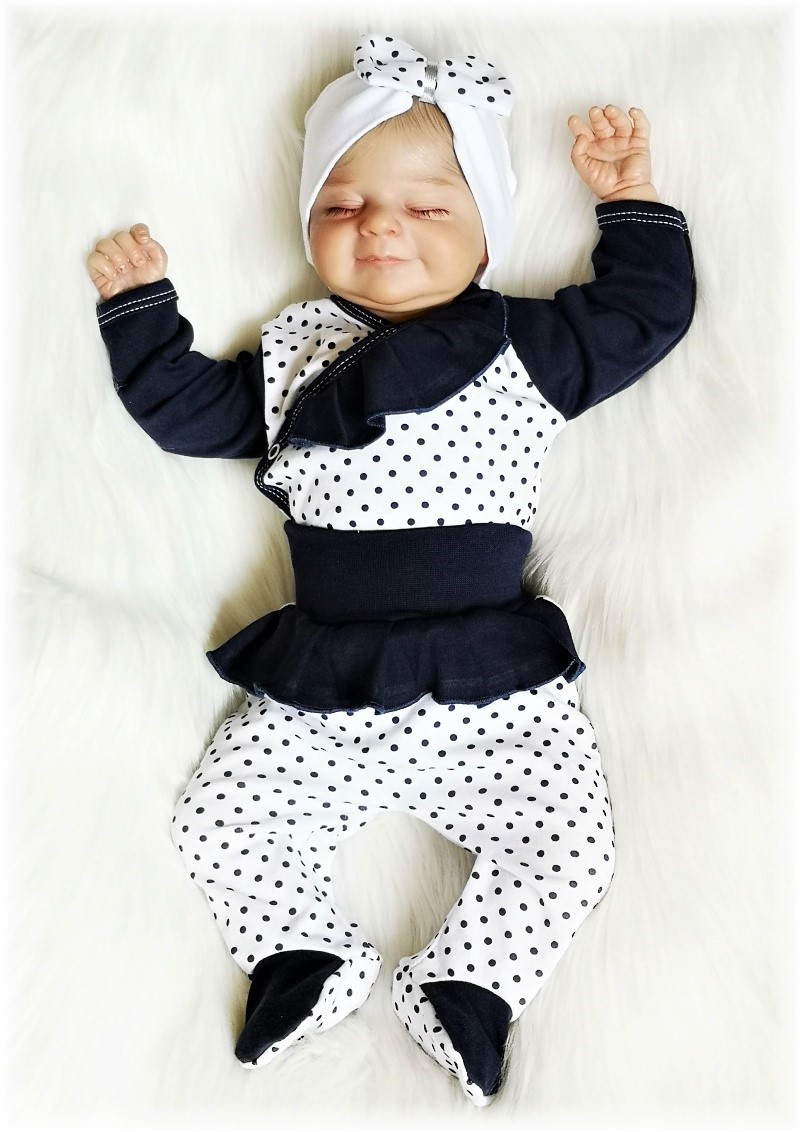 zavinovací body s kanýrkem - velmi jednoduché oblékání, není nutné přetahovat přes hlavičku, polodupačky s kanýrkem, krásná bavlněná souprava pro malé holčičky. Neobsahuje čelenku.