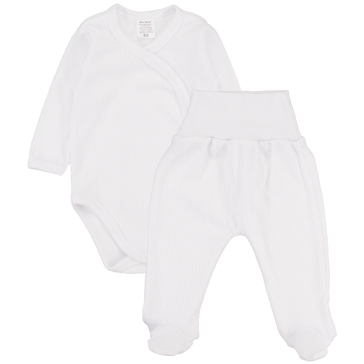 Souprava pro miminko body + polodupačky bílá s copánkovým vzorem