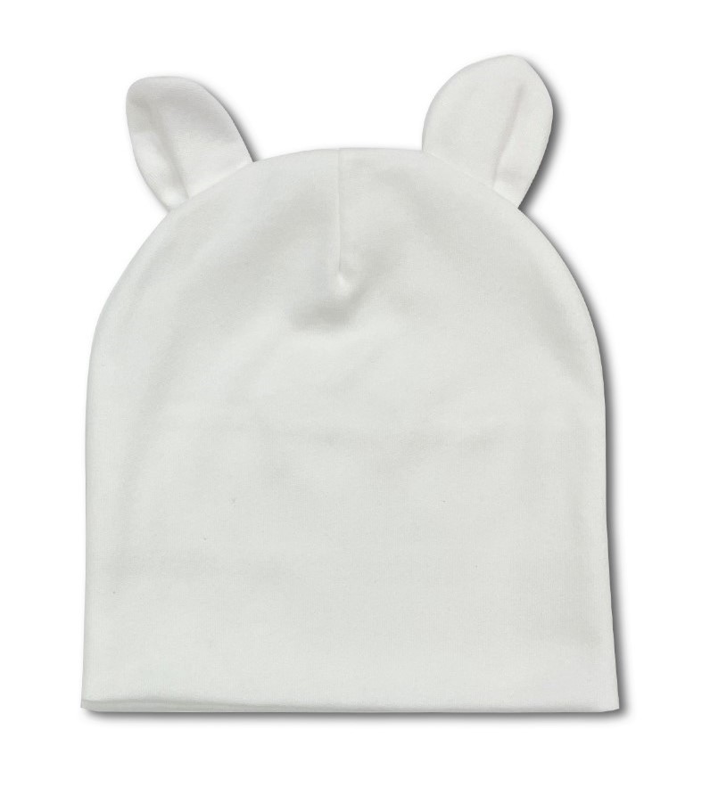 - Kojenecká bílá bavlněná čepička s oušky