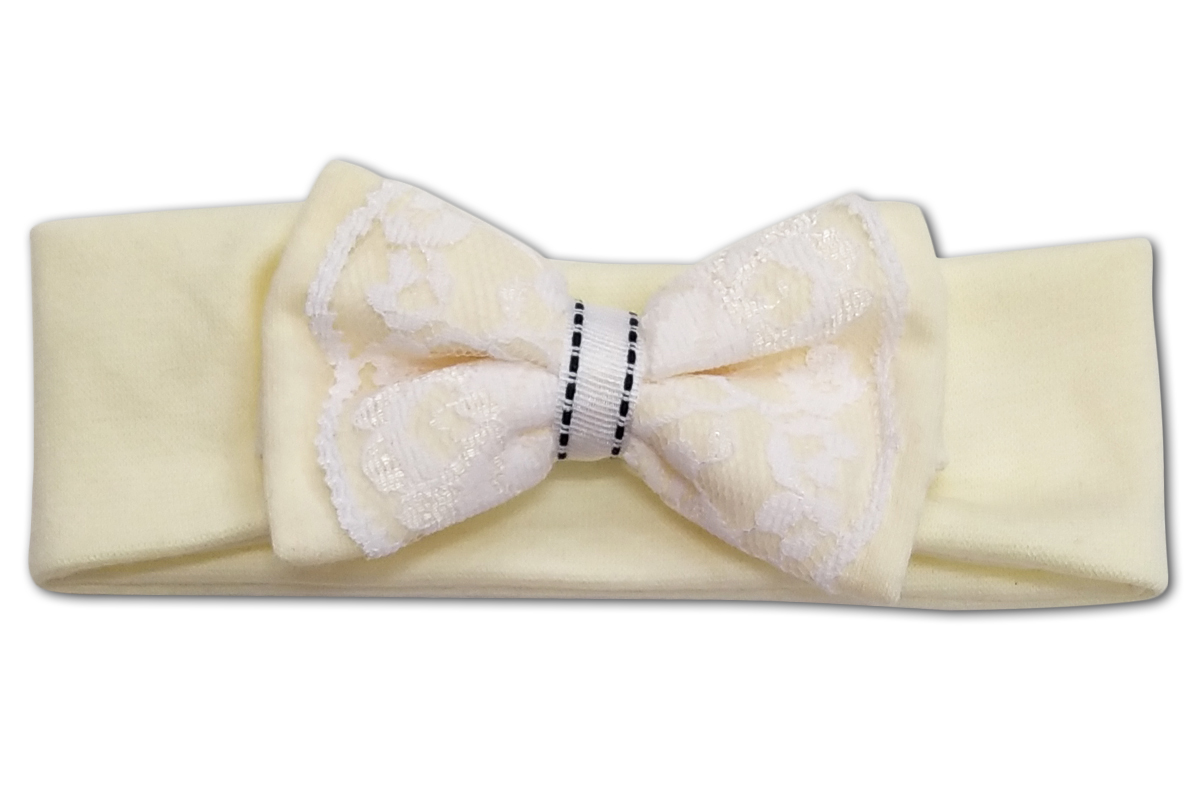 - Kojenecká čelenka s mašličkou krajka smetanová