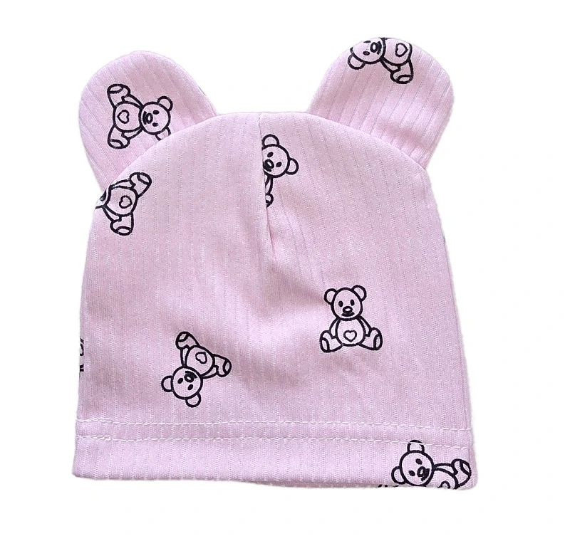 Bavlněná růžová čepička Brum Brumlík s oušky pro novorozená miminka