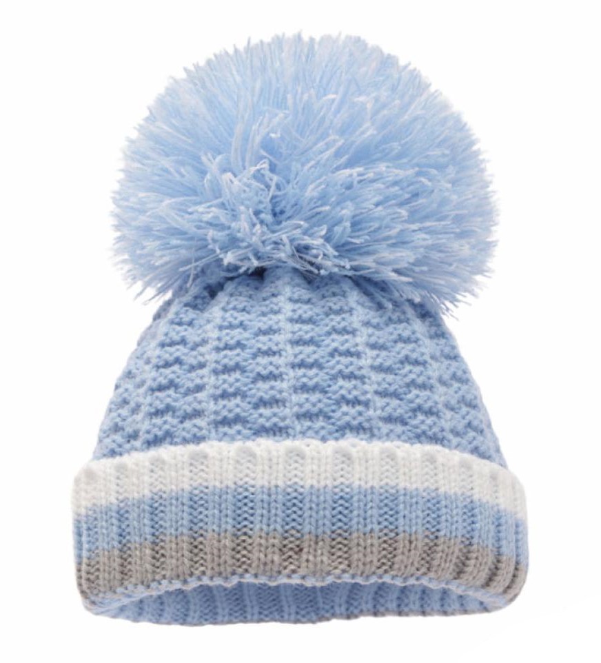 Kojenecká modrá čepice proužek s bambulíSkladem 11 ks129,00 Kč/ ks106,61 Kč bez DPH