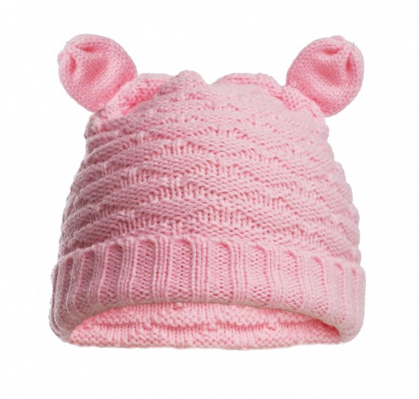 - Kojenecká pletená čepička s oušky růžová
