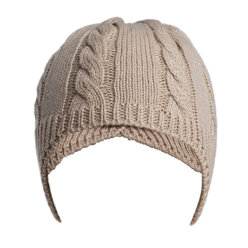 Pletená čepička pro miminko s krytými oušky kapučíno