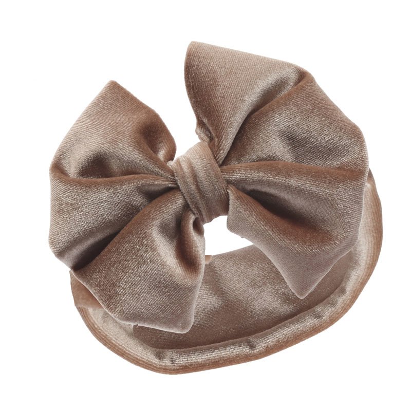 - Kojenecká sametová čelenka s mašlí kapučíno