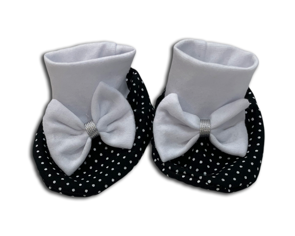 Kojenecké bavlněné capáčky s mašličkou Černé puntíky 62