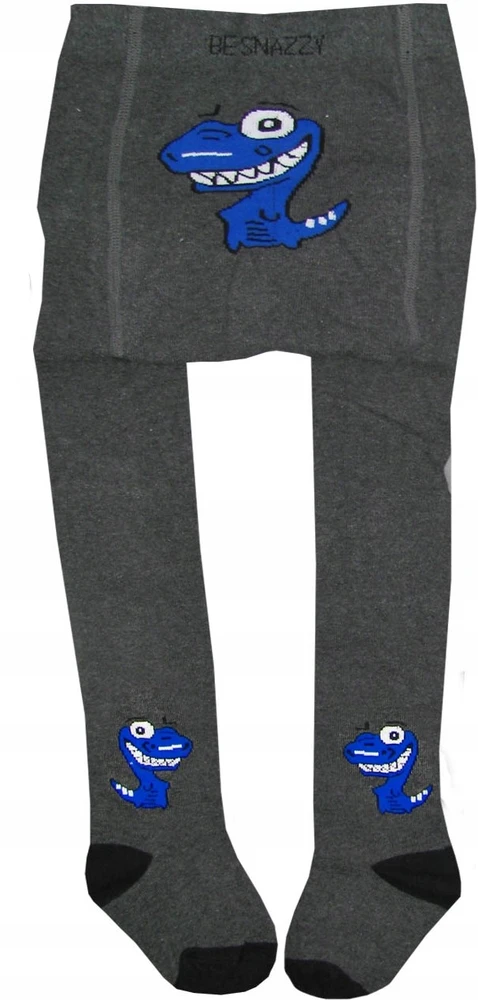 Bavlněné punčocháčky s obrázky dino tm. šedá