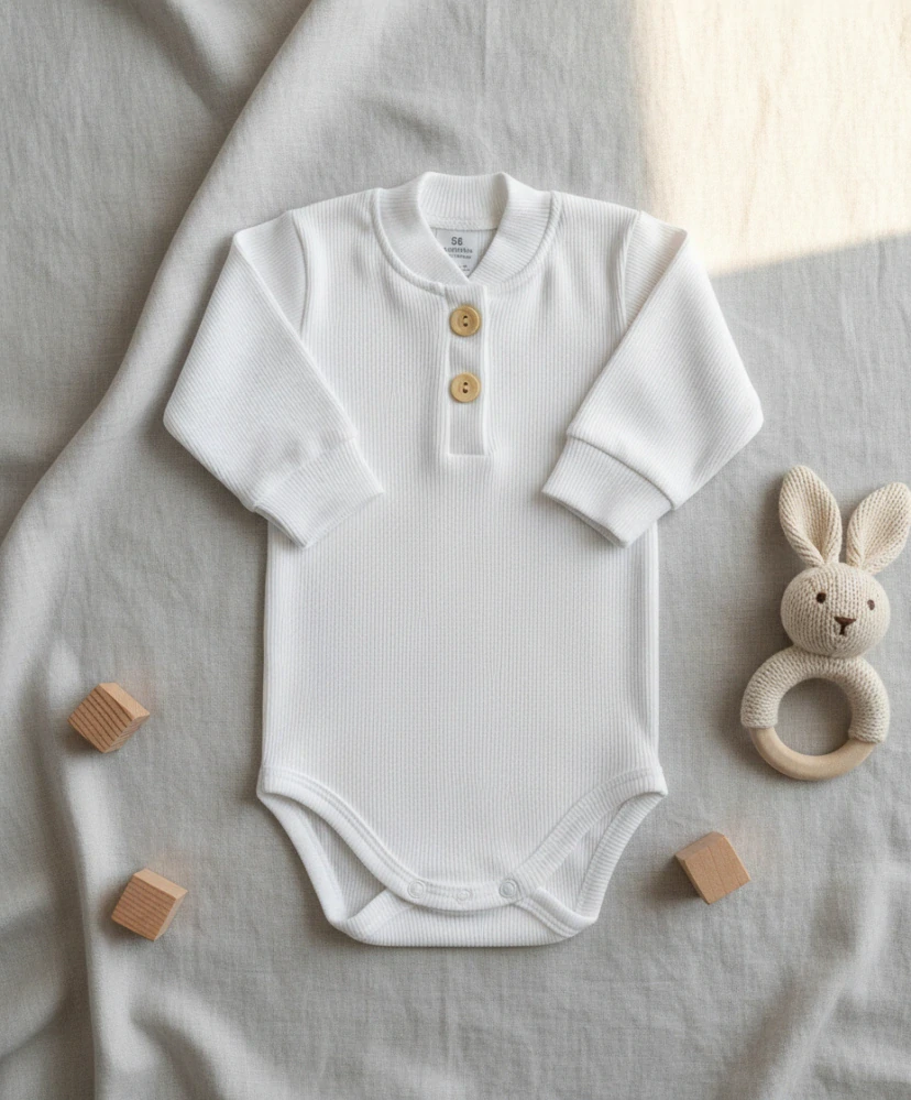 body z příjemné žebrované bavlny, pružné, pohodlné, zapínání na knoflíčky a mezi nožičkami na baby druky, pohodlné oblékání přes hlavičku i přebalování miminka.