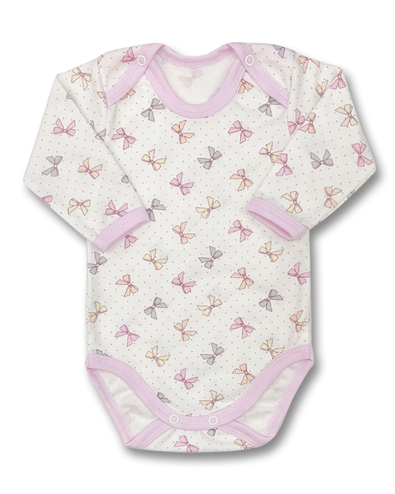 bodynko je vyrobené z příjemné jemné bavlny s barevnými mašličkami, zapínání na obou ramínkách na baby druky - usnadňuje pohodlné oblékání přes hlavičku.