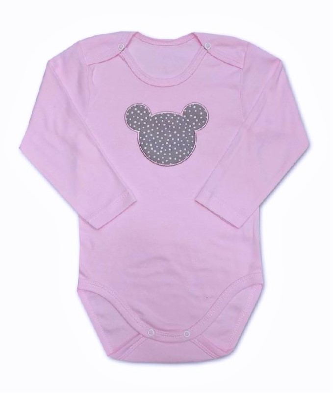 růžové bodynko s roztomilou výšivkou myšky , pro pohodlné oblékání přes hlavičku zapínání na obou ramínkách na baby druky.