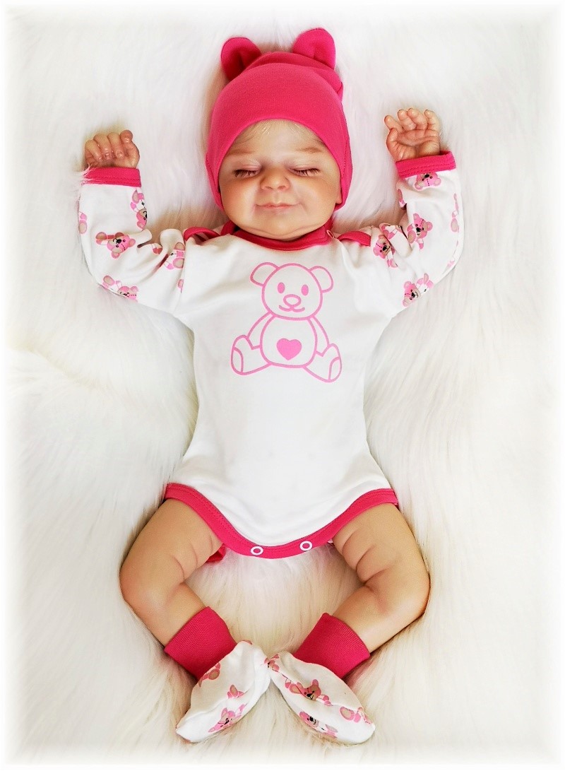 smetanové bodynko s krásným velkým obrázkem našeho medvídka Brumlíka,rukávky se vzorem medvídků, pro pohodlné oblékání přes hlavičku zapínání na obou ramínkách na baby druky.