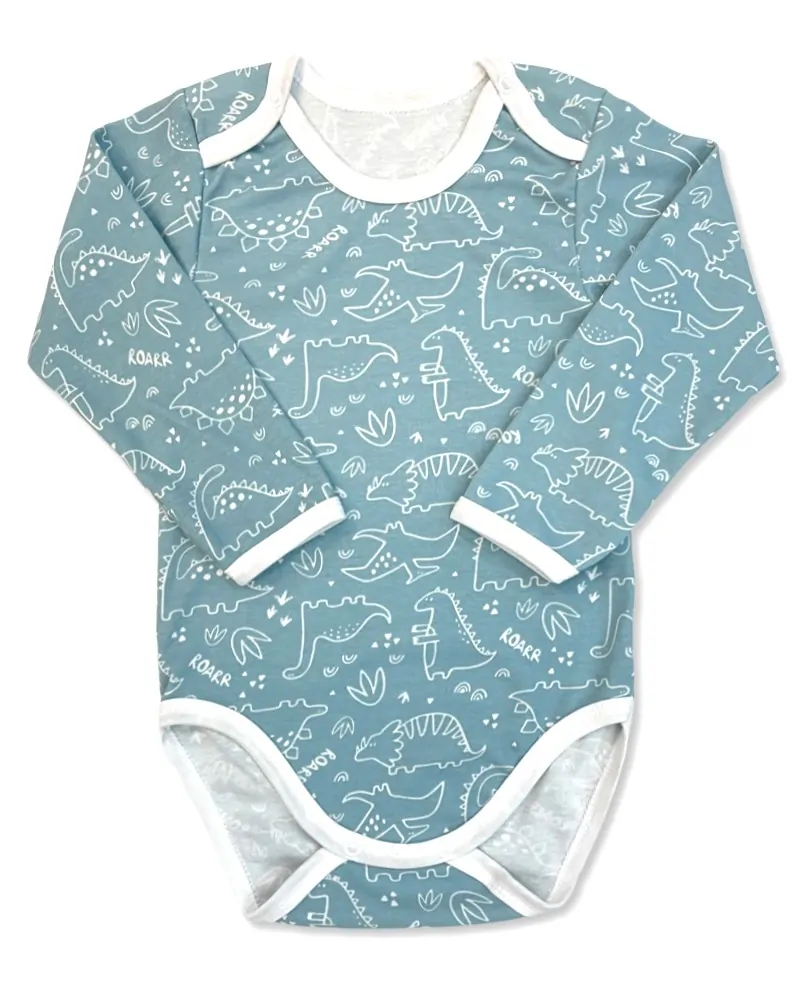 body z příjemné bavlny s obrázky dinosaurů , zapínání na obou ramínkách a mezi nožičkami na baby druky, pohodlné oblékání přes hlavičku i přebalování miminka.