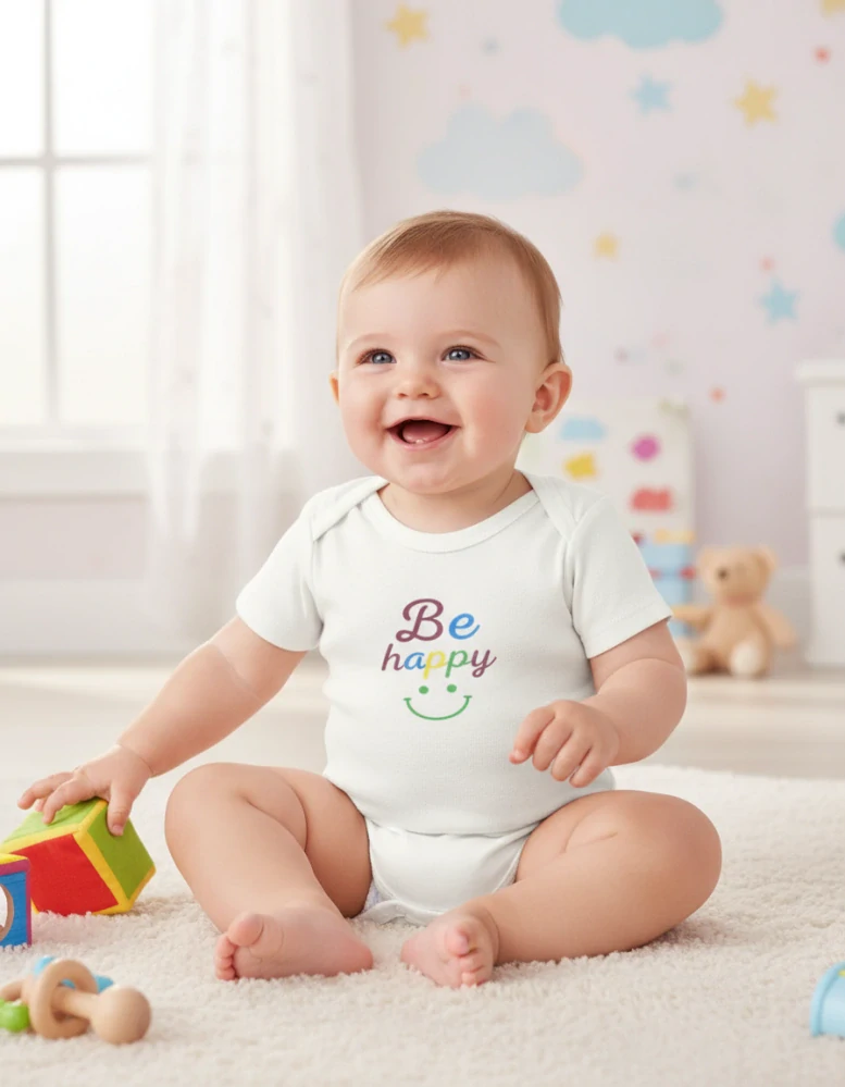 Kojenecké body kr. rukáv BE HAPPY 68Skladem 5 ks139,00 Kč/ ks114,88 Kč bez DPH
