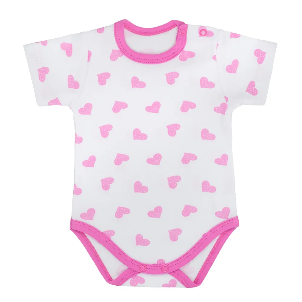 Kojenecké body kr. rukáv Růžová srdíčka 68