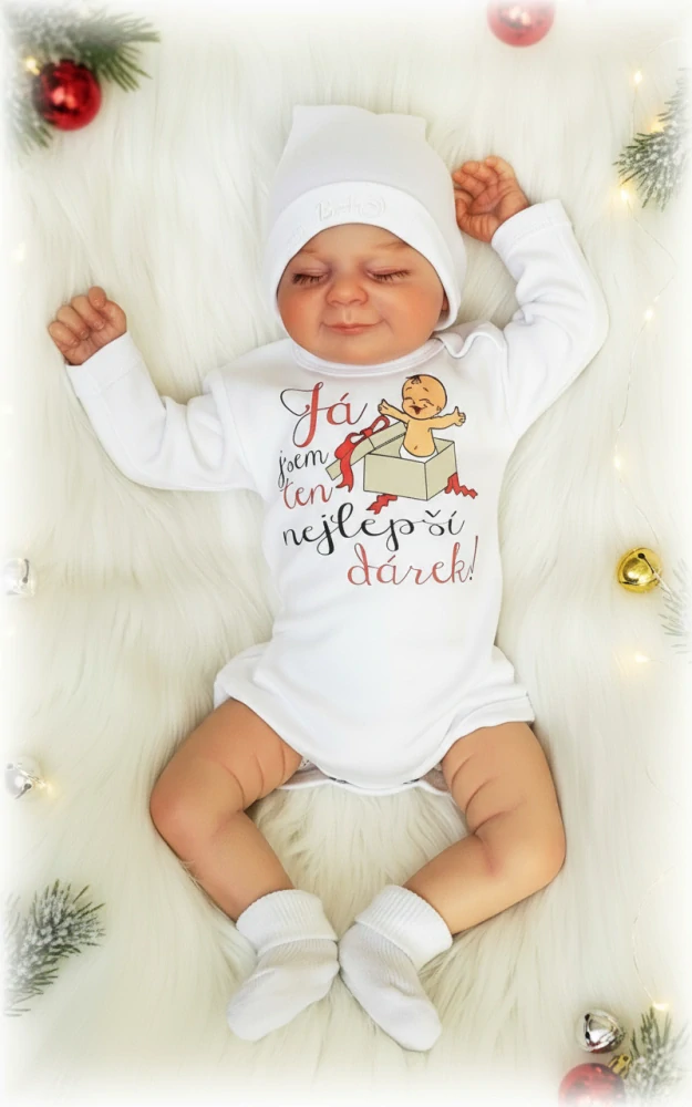 - Kojenecké body s nápisem Já jsem ten nejlepší dárek bílé