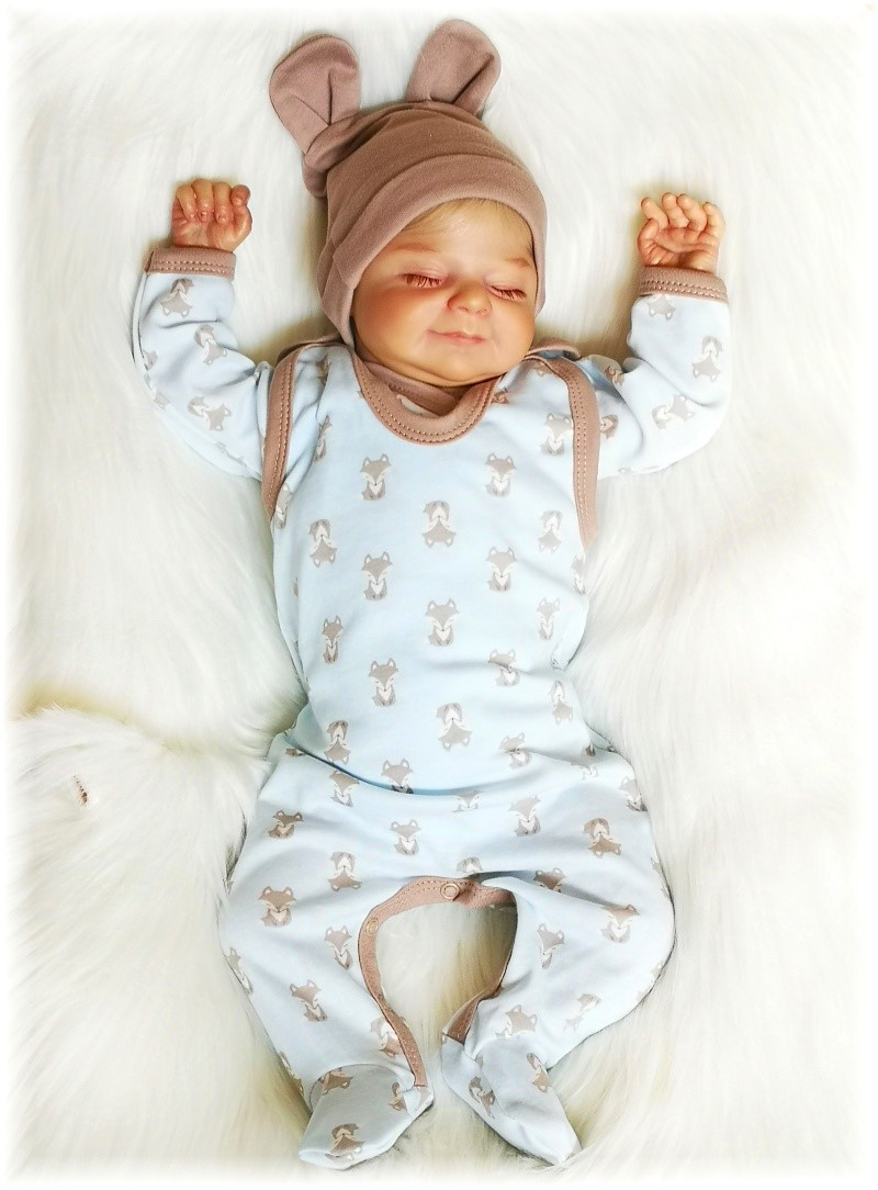 dupačky jsou vyrobené z kvalitní bavlny s obrázky lišáčků, lemování v modní kapučíno barvě. Zapínání na ramínkách a mezi nožičkami na baby druky - usnadňuje pohodlné oblékání i přebalování novorozených miminek.