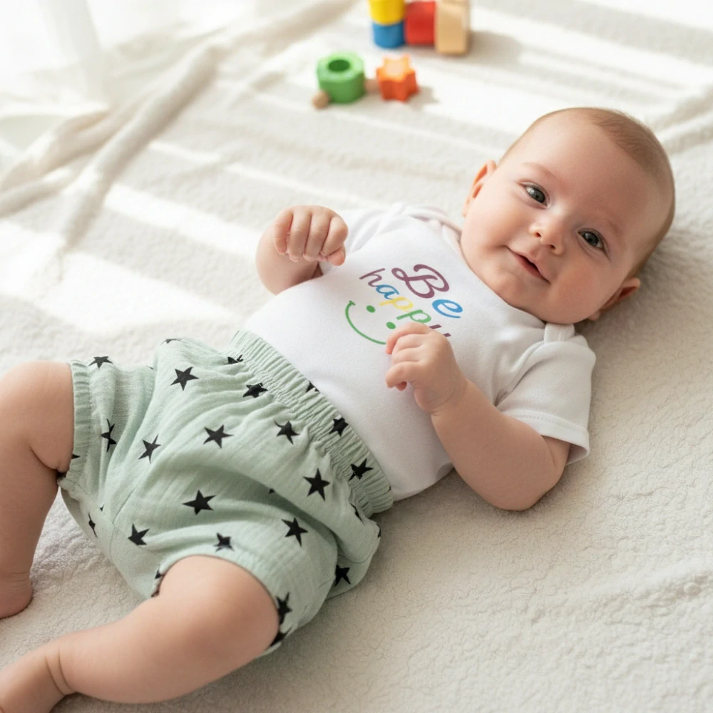 Kojenecké mušelínové kraťasy Hvězdička máta 68Skladem 6 ks169,00 Kč/ ks139,67 Kč bez DPH