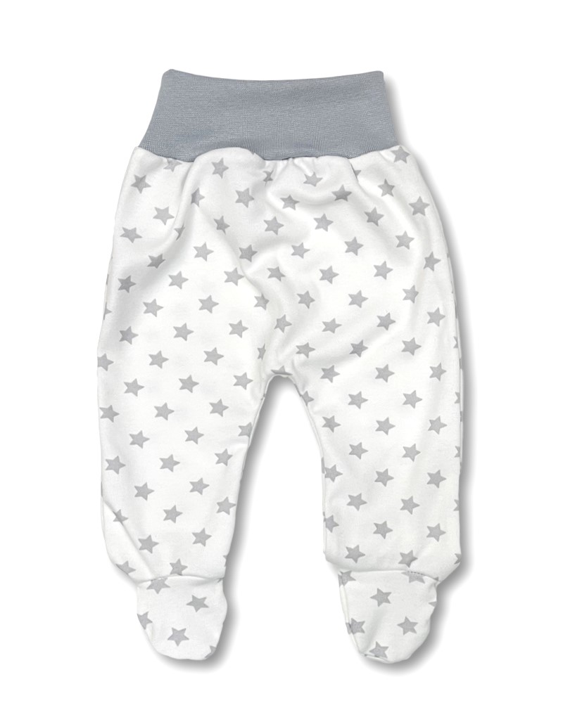 bavlněné polodupačky s potiskem hvězdiček, široký pohodlný pružný pas v šedé barvě.