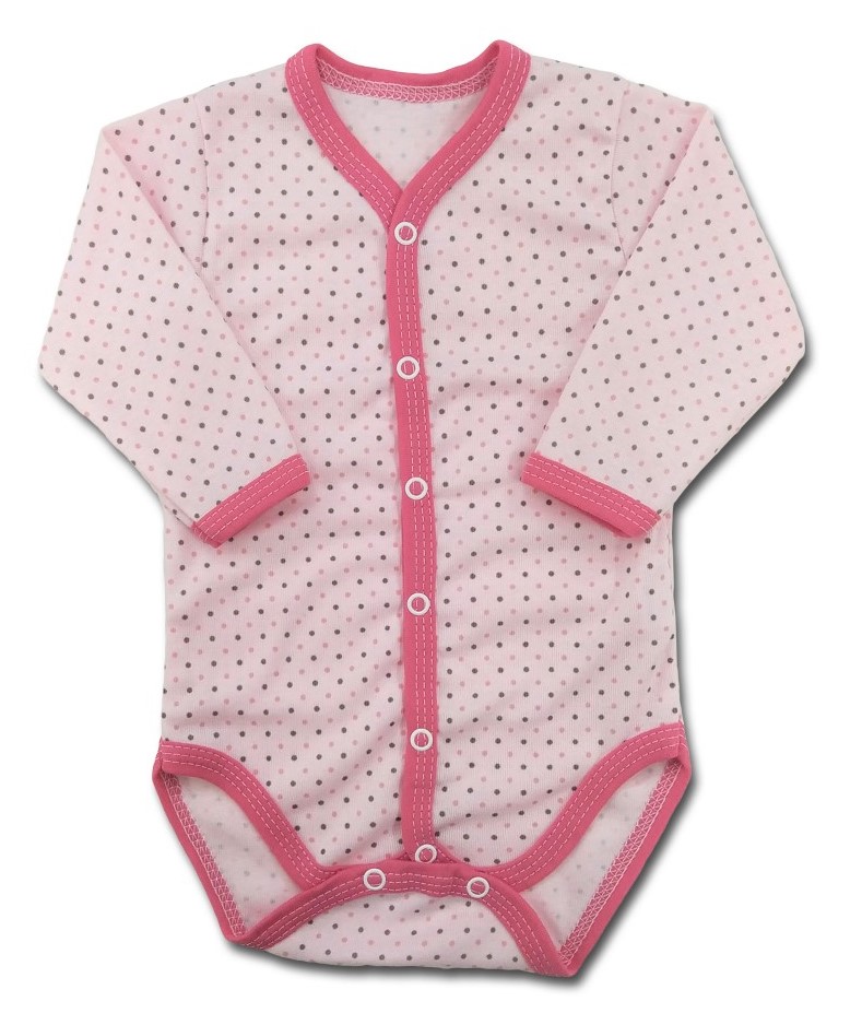 Bavlněné body propínací uprostřed s dlouhým rukávem Růžový puntíček