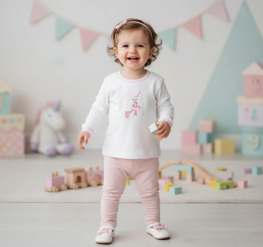 Kojenecké bavlněné tričko s dlouhým rukávem s obrázkem Baletky zajíčka