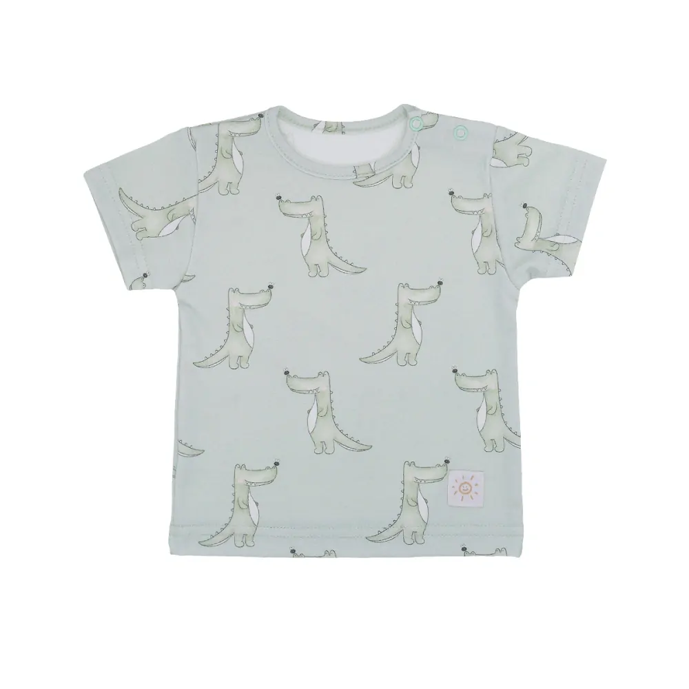 Kojenecké bavlněné tričko s krátkým rukávem Krokodýl máta
