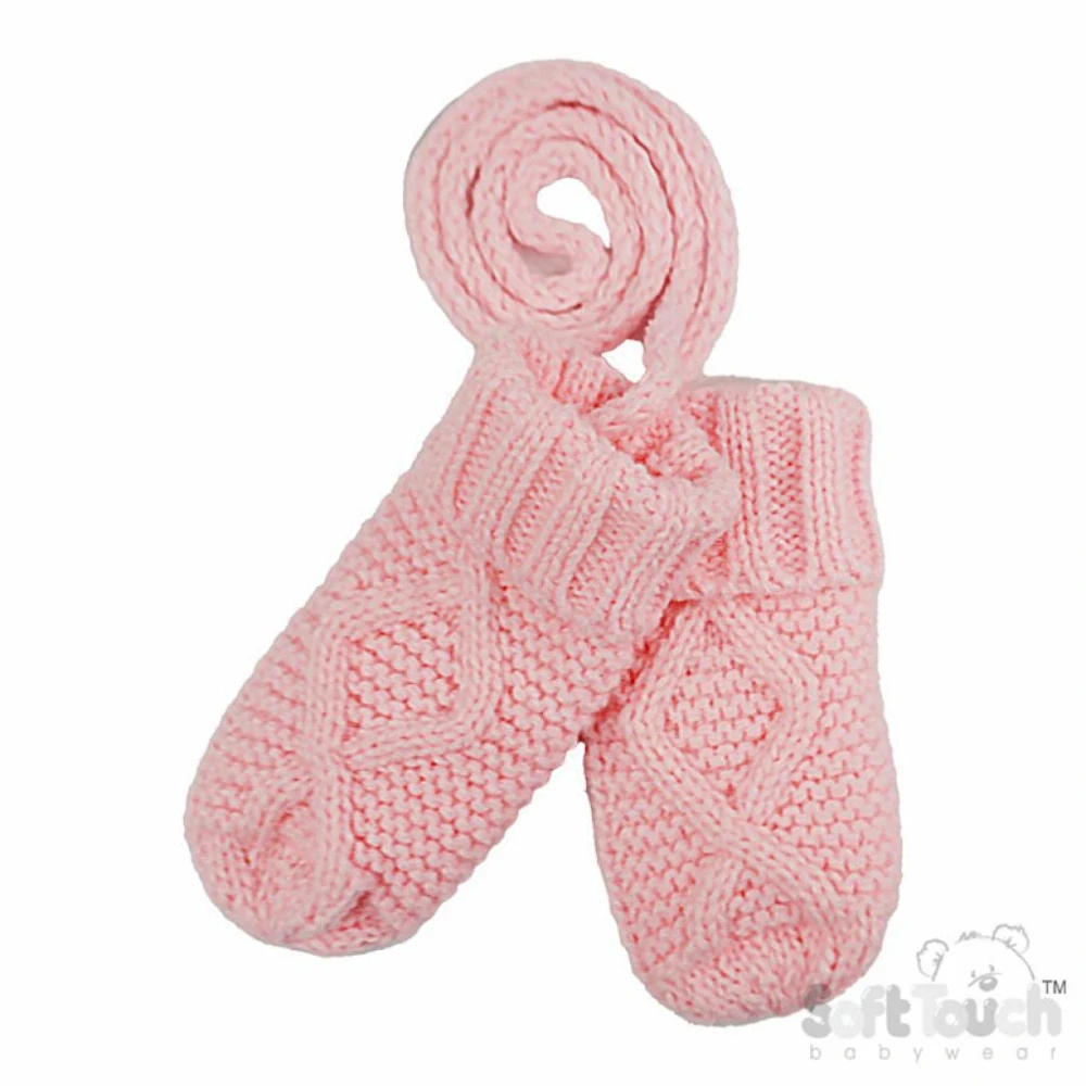 Kojenecké zimní rukavičky se šňůrkou růžová