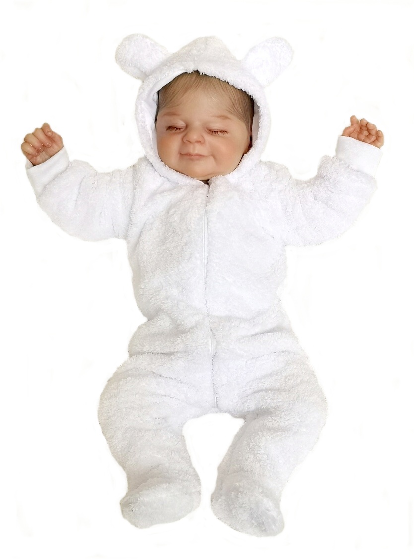měkoučký overálek z teploučkého materiálu luna se zapínáním uprostřed na zip je celý podšitý bavlnou.