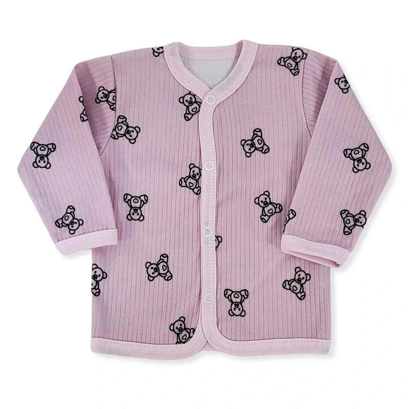 Kabátek je ideální pro nejmenší miminka, vyroben z jemné kvalitní žebrované bavlny, která nedráždí pokožku dítěte. Kabátek zdobí obrázky medvídka Brumlík. Praktické zapínání na baby druky po celé délce uprostřed.