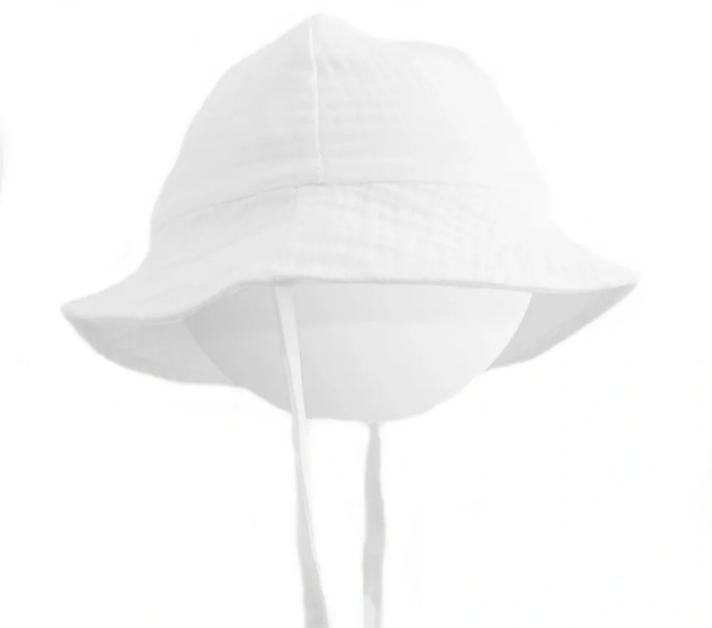 ideální letní doplněk, skvělé chrání hlavičku i očička miminka před sluníčkem. Zavazování na tkaničky, vnitřní strana je podšitá bavlněnou podšívkou.