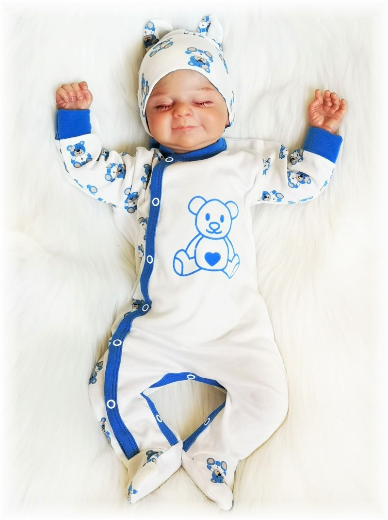 bavlněný overálek z kvalitní bavlny, na předním díle obrázek našeho roztomilého medvídka Brumlíka. Zapínání overalu je po celé délce i mezi nožičkami na baby druky, což velmi usnadňuje jak oblékání, tak přebalování miminka.