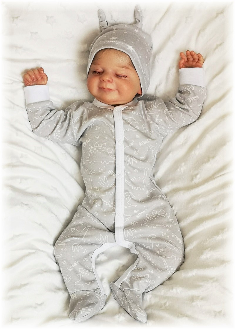 overálek je vyroben z příjemné jemné bavlny s obrázky dinosaurů, zapínání uprostřed i mezi nožičkami na baby druky - usnadňuje pohodlné oblékání i přebalování novorozených miminek - není nutné přetahovat přes hlavičku.