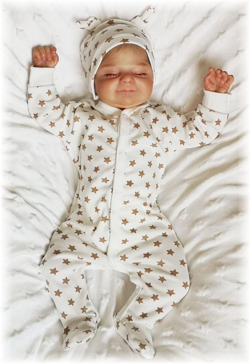 overálek je vyroben z příjemné jemné bavlny s hvězdičkami, zapínání uprostřed i mezi nožičkami na baby druky - usnadňuje pohodlné oblékání i přebalování novorozených miminek - není nutné přetahovat přes hlavičku.