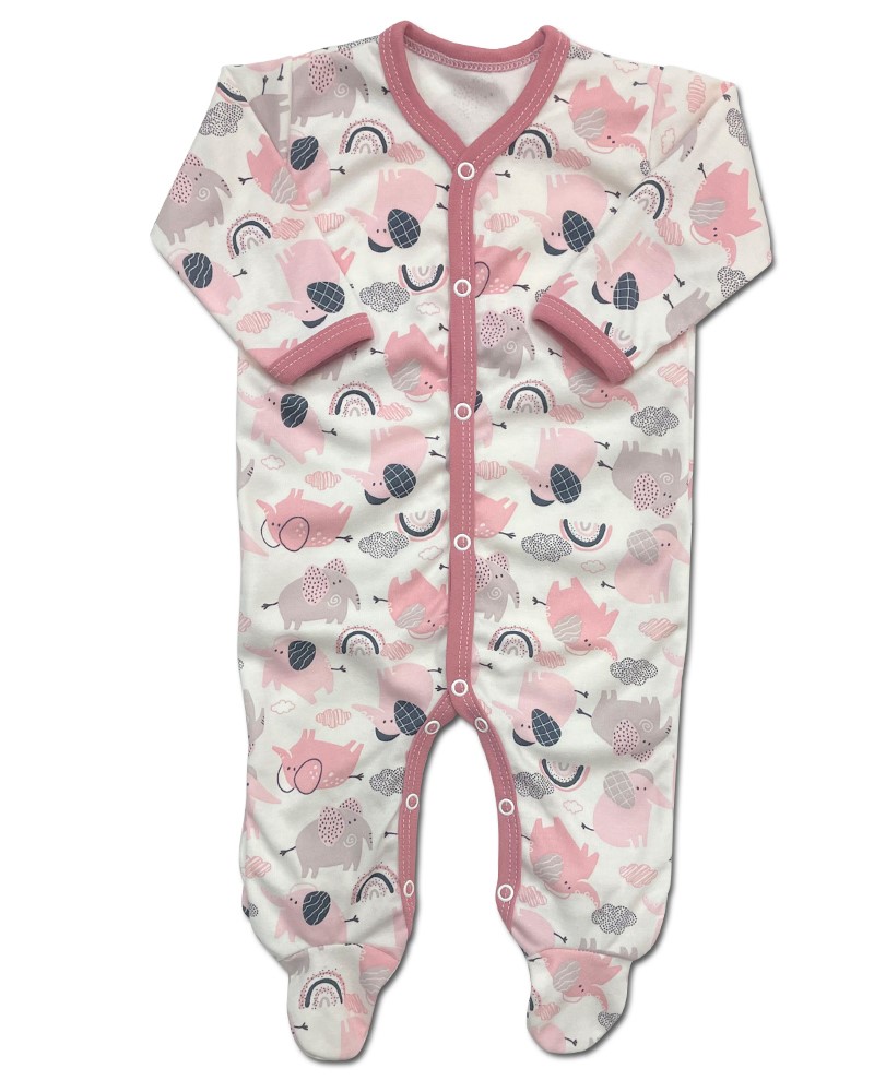 Kojenecký overálek celopropínací Duhový sloník pudrová
