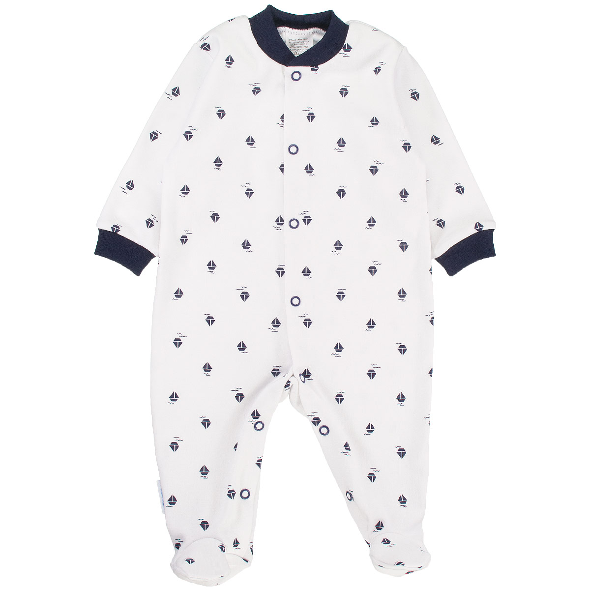 overálek je vyroben z příjemné jemné bavlny s obrázky lodiček, zapínání uprostřed i mezi nožičkami na baby druky - usnadňuje pohodlné oblékání i přebalování miminek - není nutné přetahovat přes hlavičku.