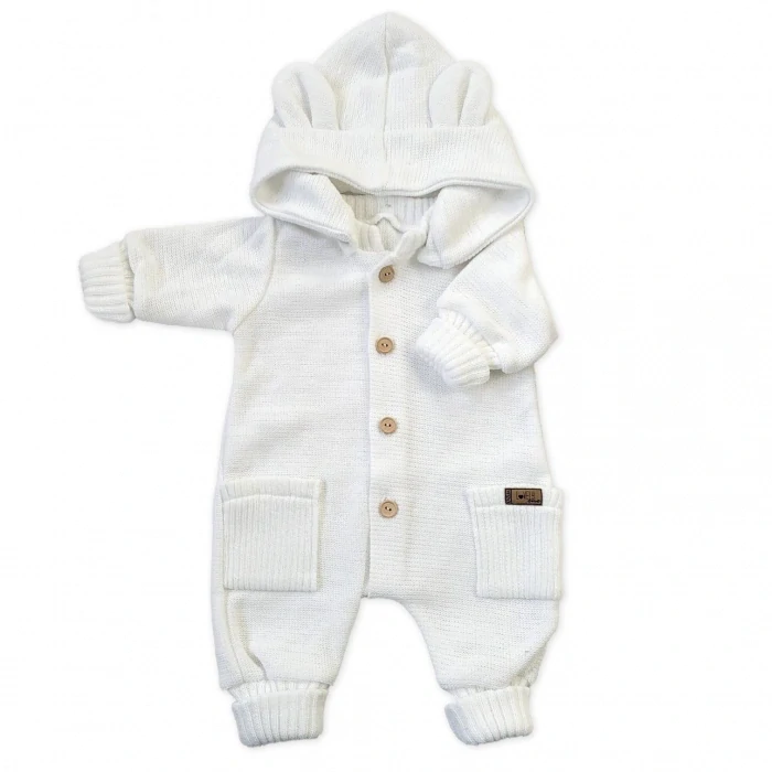 Kojenecký pletený overal s kapucí - bílá 80/86
