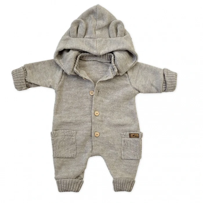 Kojenecký pletený overal s kapucí - oříšek 68/74