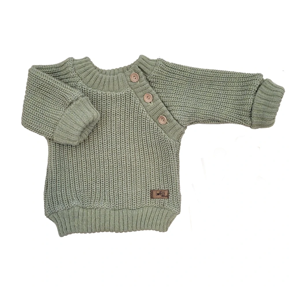 Teploučký pletený svetřík pro miminko s knoflíčky Lovely khaki.