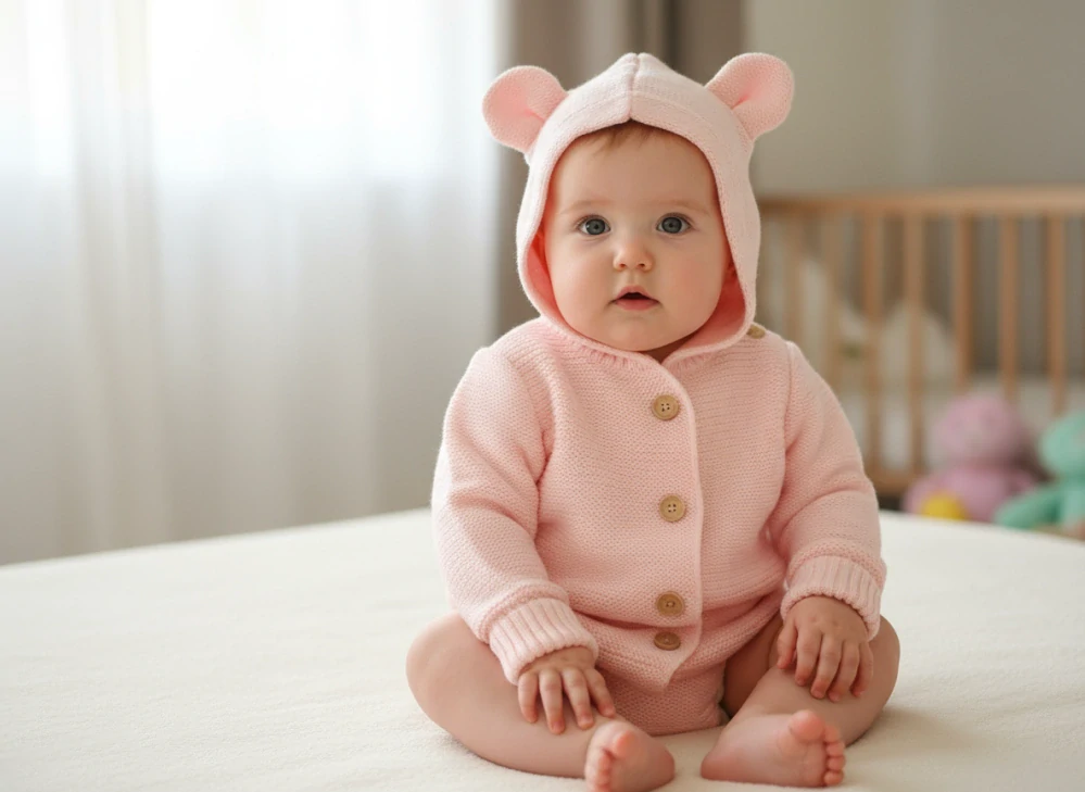 Kojenecký pletený svetřík s kapuckou růžová 68/74